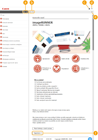 Kliknite da biste prikazali informacije o tome kako pregledati Korisnički vodič, kako pretraživati itd.