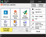 Zaslon osnovnih značajaka funkcija skeniranja i slanja