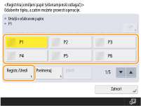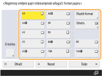 Ako registrirate veličine papira koju često koristite na gumbima od <S1> do <S4>, možete ih odabirati dodirom. Registriranje papira slobodne veličine (papir prilagođene veličine)
