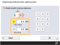 Navedite duljinu strane <X> i strane <Y>. Pritisnite <X> ili <Y> kako biste putem numeričkih tipki unijeli duljinu svake stranice.