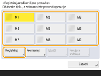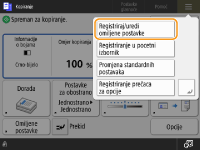 Pritisnite <Kopiranje> i odredite postavke koje želite registrirati.