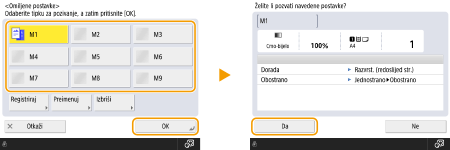 Postavke koje ponovno upotrebljavate također možete promijeniti nakon što pritisnete <Da>.