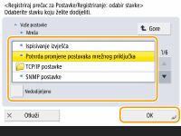 ![]() <Postavke upravljanja poč. zaslonom> <Ograniči prikaz funkcija> <Podesi> odredite da se prikazuje opcija <Postav./regist. tipke prečaca>.Prečaci koje je moguće registrirati: 10