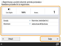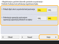<Registriranje u početni izbornik> kada je postavka dovršena.