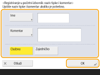 Ako odaberete <Autentikacijski podaci za prijavu na uređaj> za <Podaci korišteni za autent. TX-a/pretraživ. datoteka>, lozinka za odredište datoteke neće se spremiti u osobnom gumbu. <Podaci korišteni za autent. TX-a/pretraživ. datoteka>
