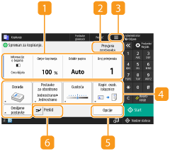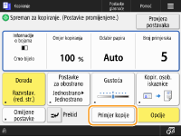 Ovisno o broju kopija i postavkama, prikazuje se <Primjer kopije> da biste provjerili rezultat kopiranja ispisom uzorka. Provjera rezultata kopiranja
