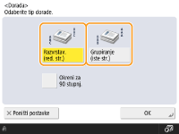 Prilikom kopiranja dva primjerka ili više njih iz ulagača, možete odabrati razvrstavanje ili grupiranje radi određivanja redoslijeda ispisa. Za ispis u redoslijedu stranica, odaberite „Razvrstavanje“. „Grupiranje“ odaberite za ispis snopova iste stranice, primjerice, 10 listova prve stranice, zatim 10 listova druge stranice i tako redom.