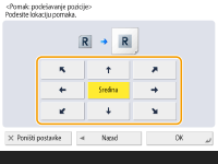 Pritisnite <Podesi> u <Prednja strana> i odredite pomak. Pritisnite gumbe gore/dolje/lijevo/desno koji pokazuju smjer i unesite pomak korištenjem numeričkih tipki.
