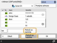 Za korištenje udaljenog adresara nužno je konfigurirati postavke poslužiteljskog uređaja. Postavite za otvaranje udaljenog adresara na poslužiteljskom uređaju.