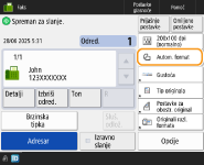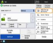 Zadaci slanja faksa/I-faksa: <Prioritet kvalitete> (<Prioritet brzine/kvalitete slike za c-b sken>)Kad je postavljeno više telefonskih linijaMožete odabrati telefonsku liniju koja će se koristiti za slanje faksova tako da pritisnete <Opcije>