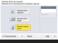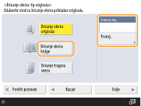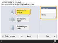 Ako je format prikazan u <Format originala> različit od formata knjige kojeg ste postavili, pritisnite <Promijeni> da biste odabrali format. Možete podesiti načine brisanja okvira knjige samo za formate originala koji su pokazani na zaslonu.