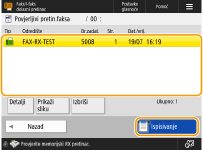 Možete postaviti primanje URL-a lokacije za spremanje e-poštom kod primanja dokumenata. Unos URL-a u adresnu traku web-preglednika omogućuje provjeru sadržaja dokumenta s računala preko sučelja Remote UI. <Podesi/registriraj povjerljive faks pretince>