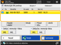 Pritiskom na <Detalji> možete provjeriti informacije o dokumentu, uključujući imena pošiljatelja i broj primljenih stranica. Pritiskom na <Prikaži sliku> možete provjeriti sadržaj dokumenta kao i odabrati i izbrisati stranice.