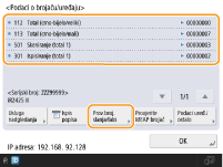 Možete provjeriti i informacije brojača za svaku MEAP aplikaciju. Pritisnite <Provjerite MEAP brojač> na zaslonu u 2. koraku. Ako pritisnete <Podaci uređ./ostalo>