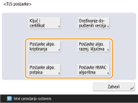 Ako opciju <Format metode kriptiranja na FIPS 140> postavite na <Uključeno>, možete uskladiti metodu enkripcije komunikacije TLS-om s federalnim standardima za obradu informacija SAD-a (FIPS) 140. <Format metode kriptiranja na FIPS 140>