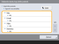 Određena ograničenja za odredišta opisana u nastavku možda neće biti dostupna ako je omogućena funkcija ACCESS MANAGEMENT SYSTEM. Upotreba funkcije ACCESS MANAGEMENT SYSTEM