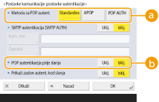 Za provjeru autentičnosti pomoću POP3 poslužitelja pritisnite <Uključeno>.