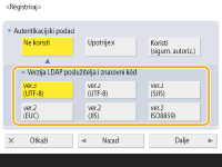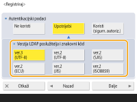 Autentifikacija se može obaviti sigurnije šifriranjem razmjene podataka. Kad se koristi ova mjera, informacije o verziji LDAP-a i znakovnom kodu postavljene su na <ver.3(UTF-8)>. Vrijeme uređaja i LDAP poslužitelja mora biti sinkronizirano.