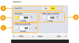 Za kodiranje komunikacije prema/od LDAP poslužitelja koristeći TLS pritisnite <Uključeno>.