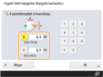 Adja meg az <X> és az <Y> oldal hosszát. Nyomja meg az <X> vagy <Y> lehetőséget, majd adja meg az egyes oldalak hosszát a számbillentyűk segítségével.