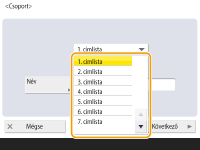 Megjelennek a 6. lépésben kiválasztott, címlistába bejegyzett rendeltetési helyek. Válassza ki a listából a csoportba bejegyezni kívánt rendeltetési helyeket.