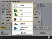 Ha az LDAP-szervert már bejegyezte a készülékbe (LDAP-szerver bejegyzése), kereshet rendeltetési helyeket, és bejegyezheti azokat a Címjegyzékbe. Nyomja meg a <Rend./Továbbít. beállitás>