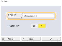 Adja meg, hogy a levelezőszerveren keresztül küldjön-e a készülék I-faxot a rendeltetési helyekre. Válassza a <Be> lehetőséget, ha a levelezőszerveren keresztül kíván I-faxot küldeni. Válassza a <Ki> lehetőséget, ha közvetlenül az azonos helyi hálózat címzettjének kíván adatokat küldeni (LAN). Közvetlenül a címzettnek való küldés esetén nagy mennyiségű adatot küldhet anélkül, hogy megterhelné a levelezőszervert.