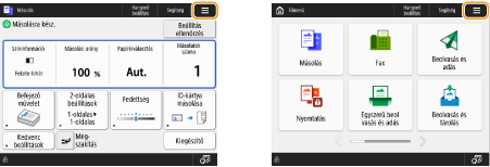 A <Főmenü> képernyőn és az Alapfunkciók képernyőn megjelenő