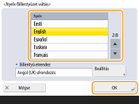 Nyomja meg a <Nyelv/Billentyűzet váltás> gombot, válassza ki a nyelvet a listából, majd nyomja meg az <OK> gombot.