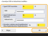 Ez a beállítás akkor használható, ha a <Személyes SSID és hálózati kulcs haszn.> <Be> értékre van állítva a <Hozzáférési pont mód beállítás> lehetőségnél.