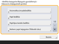 Ha a <Gyorsbillentyű beállítás/bejegy.> nem jelenik meg a <Főmenü> képernyőn, nyomja meg a   <Főmenü kezelés beállításai>  gombot <Funkciók megjelenítésének korlátozása>  <Beállítás>  állítsa be a megjelenítendő <Gyorsbillentyű beállítás/bejegy.> lehetőséget.