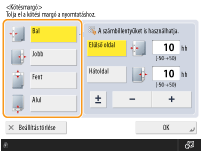 Kötésmargókat is elhelyezhet a másolaton tűzéshez vagy lyukasztáshoz. Külön is beállíthatja az elülső oldal és a hátoldal kötésmargóit.