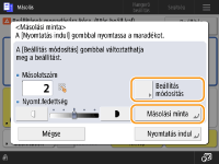 Nyomja meg a <Beállítás módosítás> gombot a beállítások megváltoztatásához. A beállítások megváltoztatása után megjelenik a <Másolási minta> gomb. Nyomtasson egy új mintát.