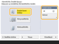 Ha az <Eredeti mérete> opciónál megjelenő méret eltér az eredeti beállított méretétől, nyomja meg a <Változtat> gombot a méret kiválasztásához.