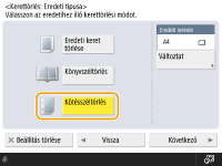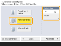 Ha az <Eredeti mérete> opciónál megjelenő méret eltér a könyv beállított méretétől, nyomja meg a <Változtat> gombot a méret kiválasztásához.