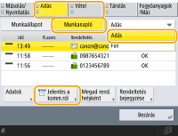 A listából válassza ki a <Adás> vagy <Vétel> elemet, és nyomja meg a <Jelentés a komm.ról> gombot.