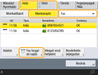 A listából válassza ki a <Fax> elemet, és nyomja meg a <Fax forgalmi napló> elemet.