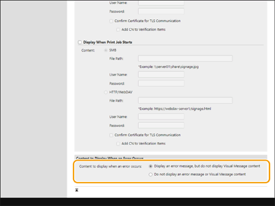 Megjelenítendő tartalomként állítson be egy fájlkiszolgálón vagy egy másik, ugyanazon a hálózaton lévő Canon többfunkciós nyomtató Tárhely tárhelyén elmentett fájlt. Munkavégzés más eszközökkel