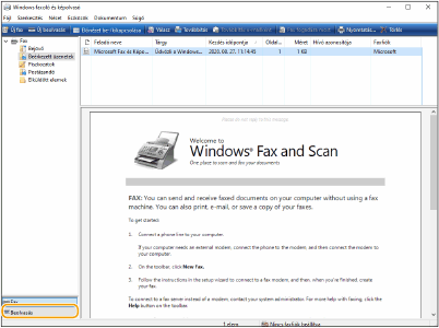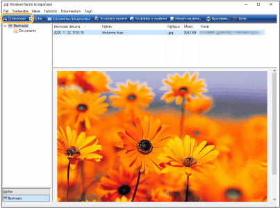 A beolvasás befejezése után a beolvasott dokumentum megjelenik a [Windows faxoló és képolvasó] képernyőn látható fájllistában, és a rendszer végrehajtja a mentését a [Dokumentumok] mappa [Beolvasott dokumentumok] mappájában.