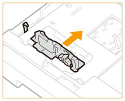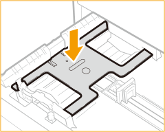 Spausdami viršutinę dešiniojo kreipiklio dalį, įkiškite, kad sulygiuotumėte su įdedamo popieriaus dydžio indikatoriumi.