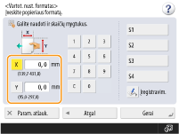 Jeigu dažnai naudojamo popieriaus formatą susiejate su mygtukais <S1>–<S4>, galite iškviesti juos vienu paspaudimu. Nestandartinio formato (pasirinktinio formato) popieriaus registravimas