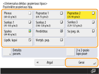 mygtuką, kuriam buvo užregistruotas popieriaus tipas <Gerai>. Universaliajame dėkle dažnai naudojamo popieriaus formato ir tipo registravimas |