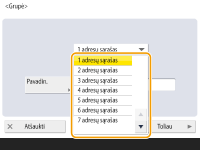 Rodomi adresatai, įregistruoti adresų sąraše, kuriuos pasirinkote atlikdami 6 veiksmą. Šiame sąraše pasirinkite adresatus, kuriuos norite įregistruoti grupėje.