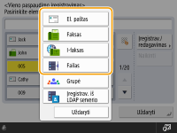 Jei aparate jau buvo užregistruotas LDAP serveris (LDAP serverio įregistravimas), jūs galite ieškoti adresatų ir susieti juos su vieno paspaudimo mygtukais. Paspauskite <Adr./persiunt. parametrai>