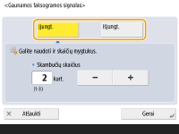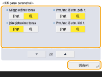Net jei gavimo tonas nustatytas kaip <Išjungt.>, gavimo tonas bus skleidžiamas, kai faksograma gaunama miego režimu, jei nustatytas mažas energijos vartojimo lygis miego režimu. <Energ. sąn. miego režimu>