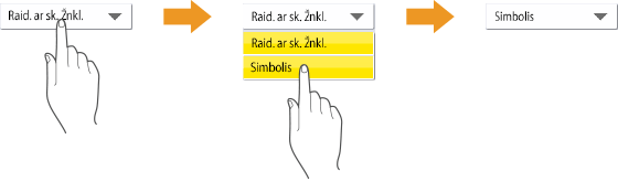 Nors funkcijos ir parametrai gali skirtis, ekrane rodomų mygtukų operacijų metodai ir elementų pasirinkimo procedūra yra vienodi. Šiame skyriuje aprašyti ekrane dažnai rodomų mygtukų operacijų metodai bei nurodyta, kaip pasirinkti elementus.