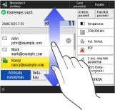 Kai kuriuose ekranuose galima slinkti sąrašą brūkštelėjant už sąrašo ribų.