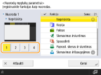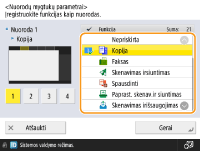 Pradiniuose parametruose <Garso parametrai> užregistruoti kaip 3 spartusis mygtukas, o <Pagalba> užregistruota kaip 4 spartusis mygtukas.