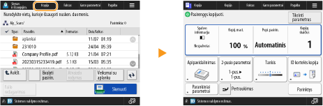 Galite sukurti spartųjį klavišą funkcijoms ekrane <Pagrindinis>. Šiuo klavišu galite atsidaryti skirtingas funkcijas negrįždami į ekraną <Pagrindinis>. Norėdami sukurti spartųjį klavišą, prisijunkite su administratoriaus teisėmis. Prisijungimas prie aparato