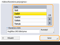 Paspauskite <Kalbos/klaviatūros perjungimas>, pasirinkite kalbą iš sąrašo ir paspauskite <Gerai>.
